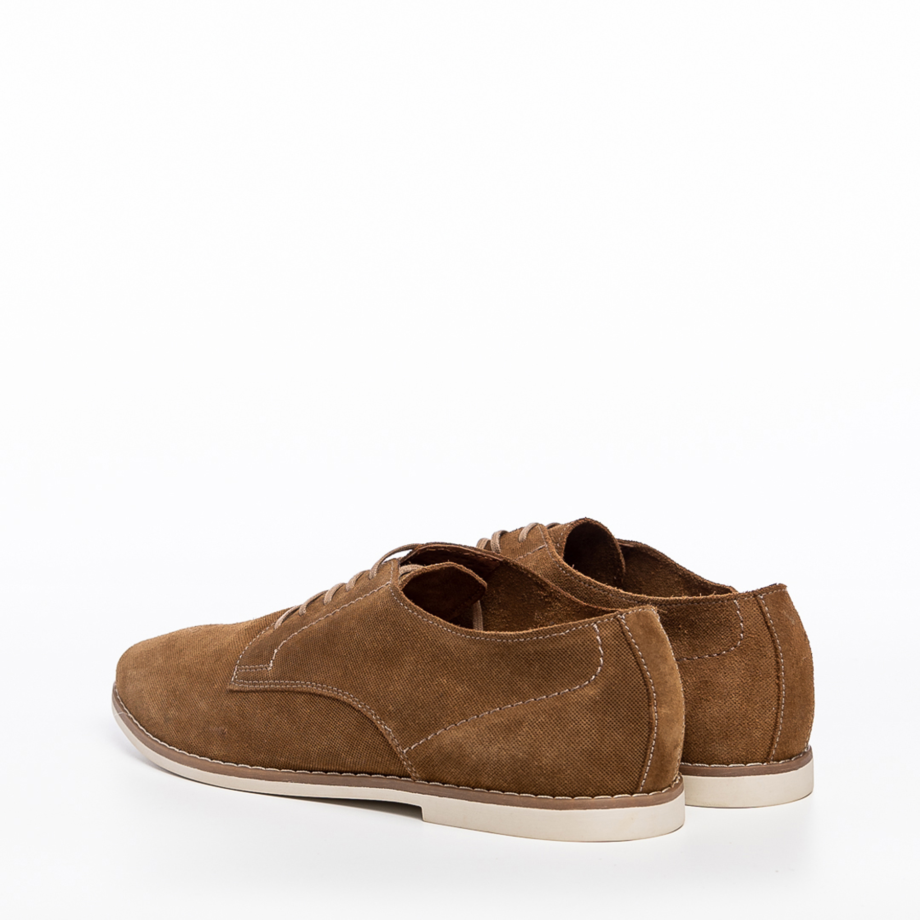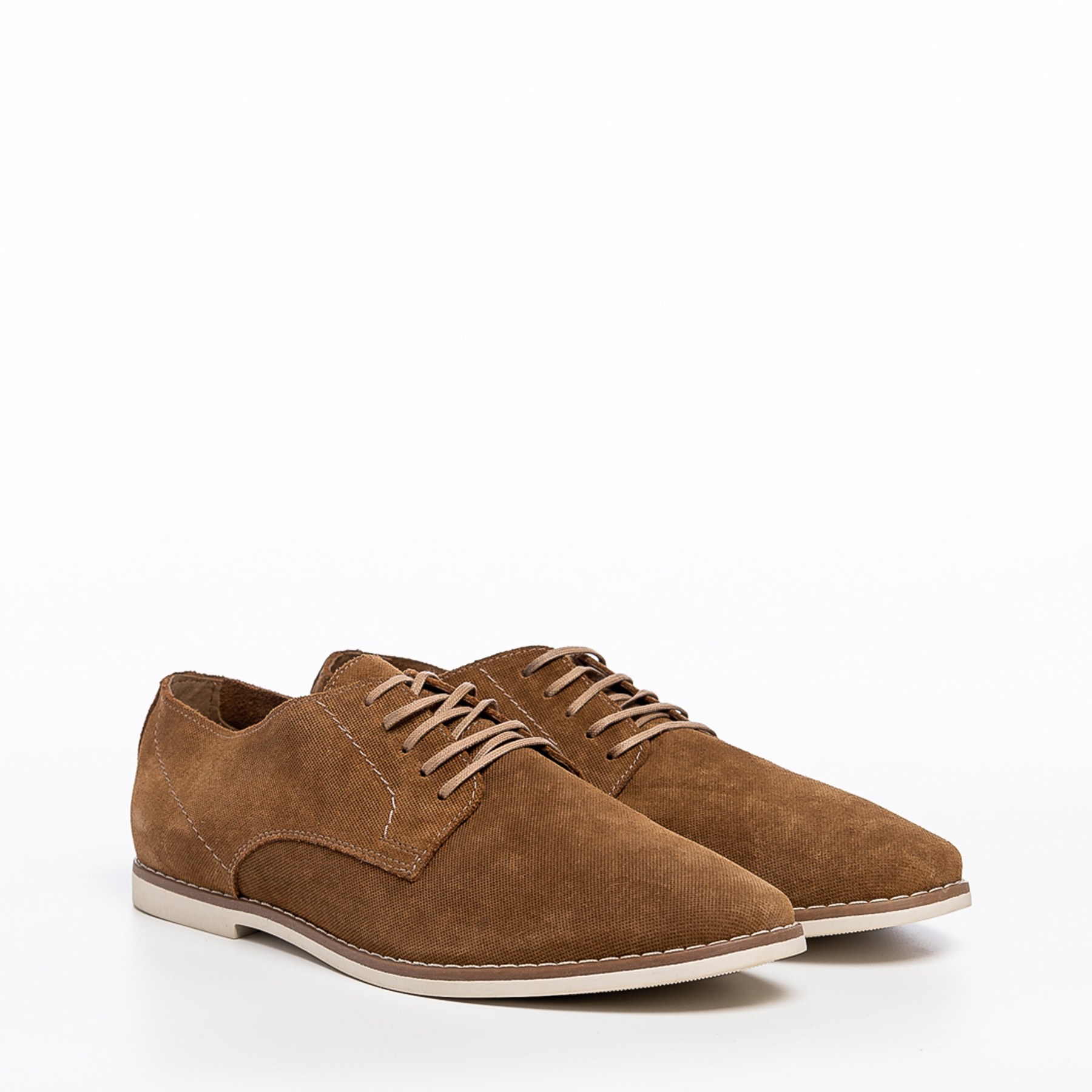 Pantofi barbati din piele intoarsa, cu siret, culoare cognac
