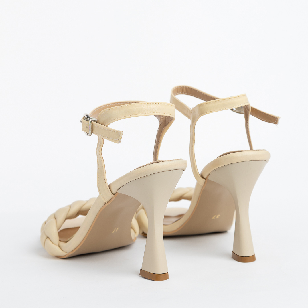 Sandale dama elegante din piele ecologica cu inchidere la baza gleznei, extrem de comode. Inaltime toc:9 cm