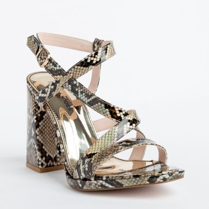 Sandale dama din piele ecologica de inalta calitate cu toc gros cu o inaltime de 10 cm, extrem de comode